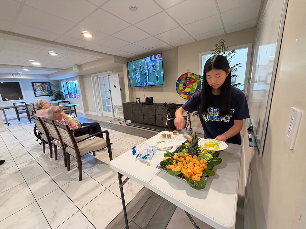 We helped pass out the food and drinks to the seniors while they kept playing bingo. By the end of the game, everyone was relaxing and enjoying the food.